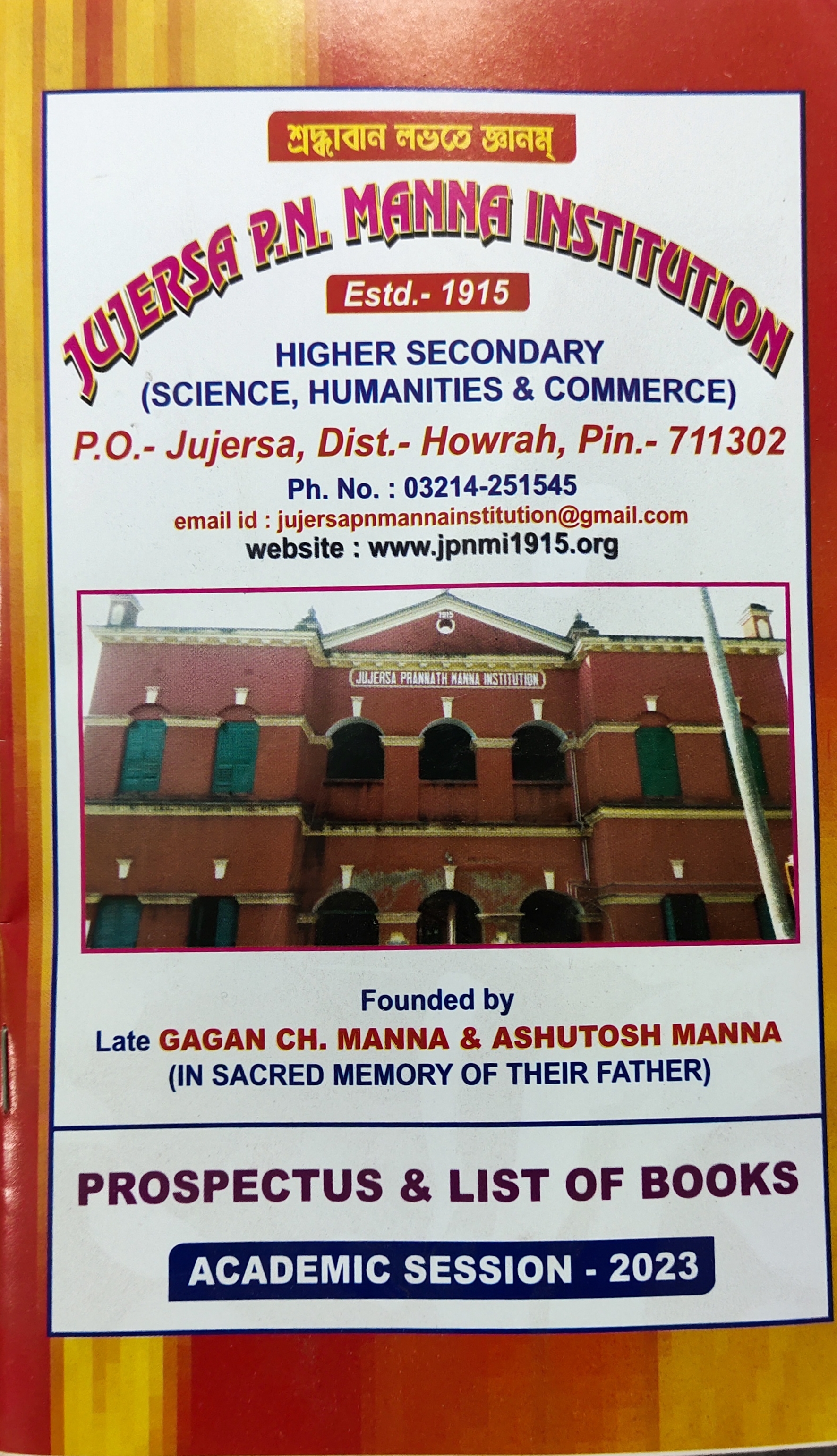 H.S. Recogn No. GS/How/76-77/R-14, DISE Code: 19161205804, School Index No. F1-077, H.S. Code No. 10605